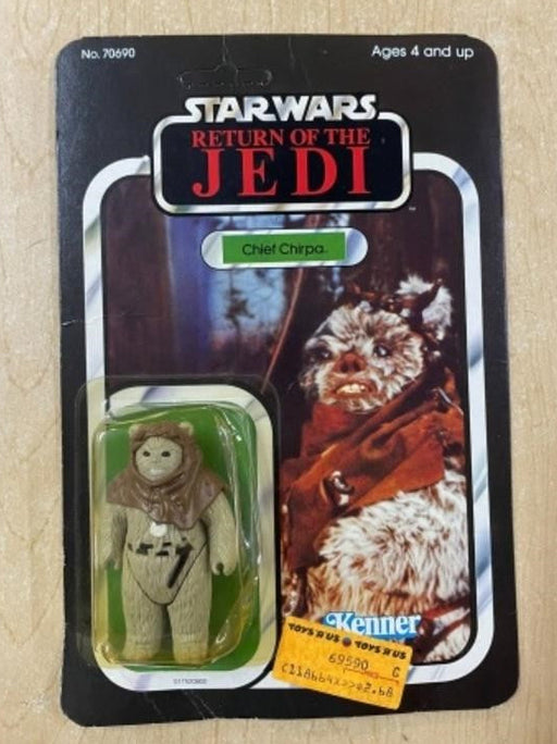 View full details1983 Kenner Star Wars Return of the Jedi Chief Chirpa action figure on 65 back card. This card is unpunched, and has a slight crease at the top.